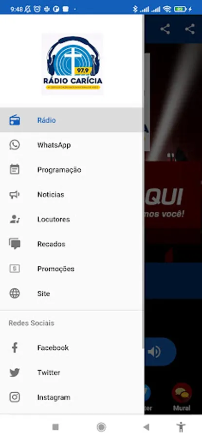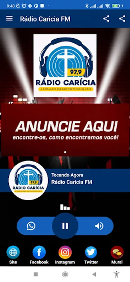 Application of Rádio Caricia FM, Located in the city of Correntina - BA