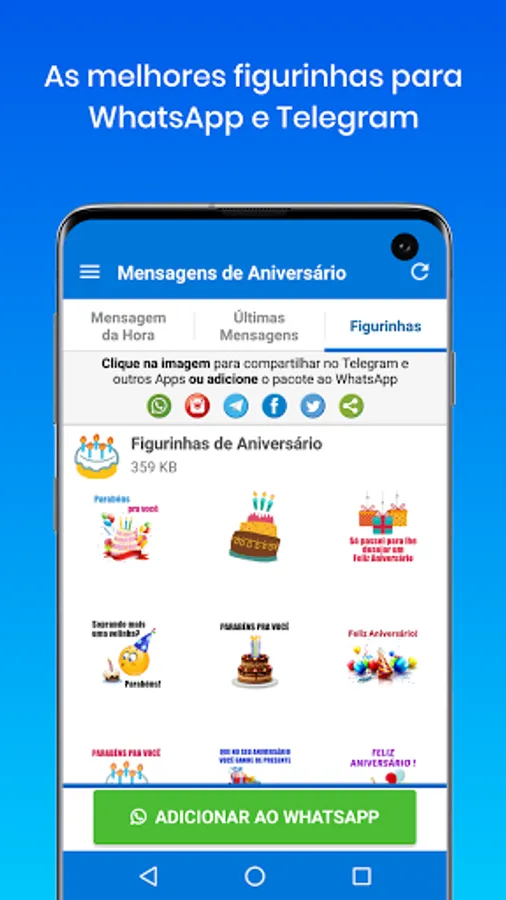 Stickers for WhatsApp and Telegram that can also be shared directly as images in other apps and social networks.