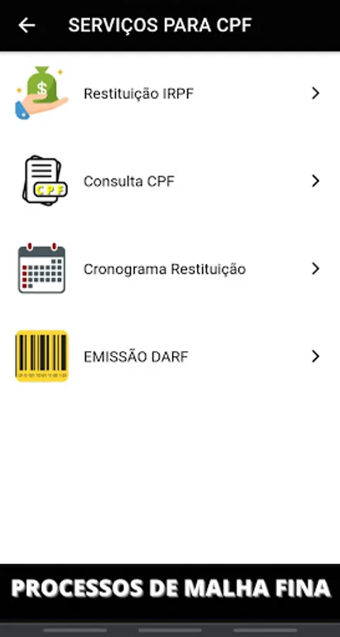 Check the status of your Individual Income Tax refund and find out which lot will fall or if it is in the fine mesh. Generate your DARF directly through the application.