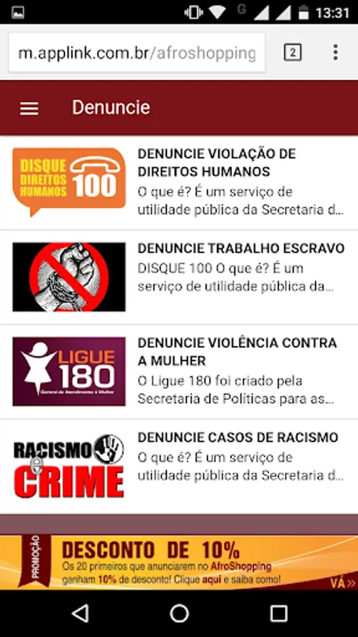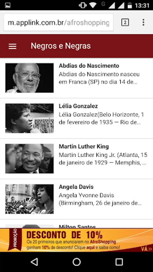 African Shopping is a shopping guide for mobile phones targeted to entrepreneurs (as), professionals and entrepreneurs (the) Afro-Brazilians (as).