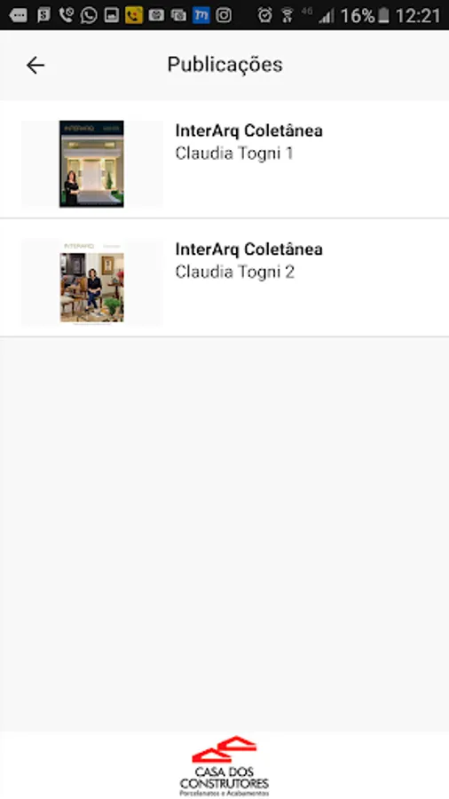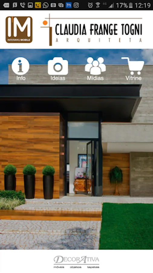 Application that works as a communication channel between the architect Claudia Togni of São José do Rio Preto - SP, with your customers and followers. Contains: the profile of the professional, contact details, chat, portfolio of works, social media, projects published in magazines and script stores addresses and services partners.