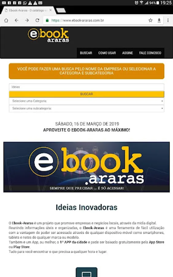 Regardless of the size of your company / business and its area of expertise, Ebook-Araras reserves only your space to display the content of your advertising, which is available on both the site and the App.