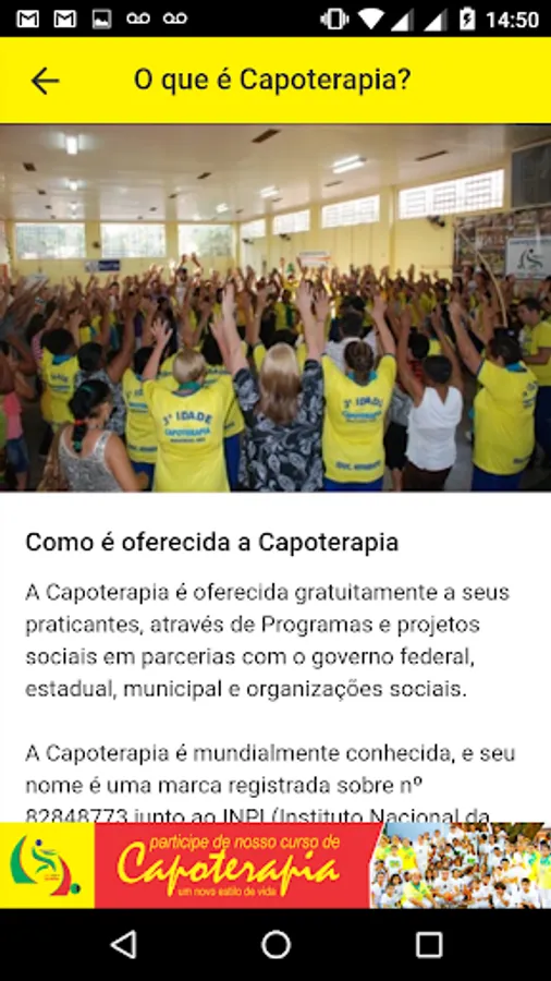 The Capoterapia is known worldwide, and its name is a trademark of No 82848773 with the INPI (National Institute of Industrial Property).