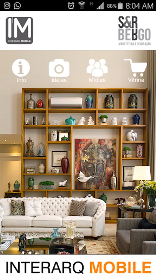 Application that works as a communication channel between professional and Sandra Roberta Bergo of São José do Rio Preto - SP, with your customers and followers. Contains: the profile of the designer and architect, contact details, chat, portfolio of works, social media, projects published in magazines and script stores addresses and services partners.