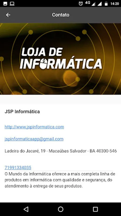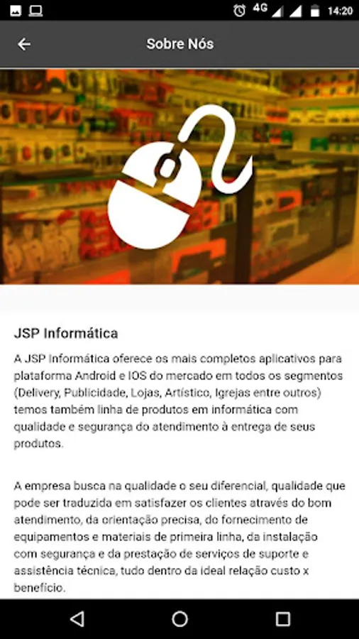 The JSP Computer offers the most complete applications for Android and market IOS platform in all segments (Delivery, Advertising, Shopping, Artistic Churches among others) also have product line information with quality and safety of care for the delivery of its products .