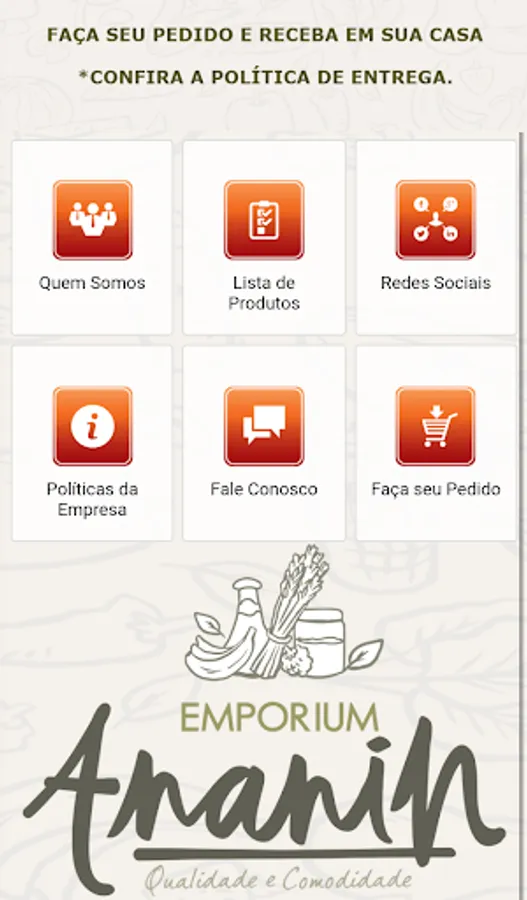 We created the App Emporium Ananin in order to facilitate the daily lives of our customers, making the delivery of vegetables and fruits always fresh, sanitized and high standard, ready for consumption.