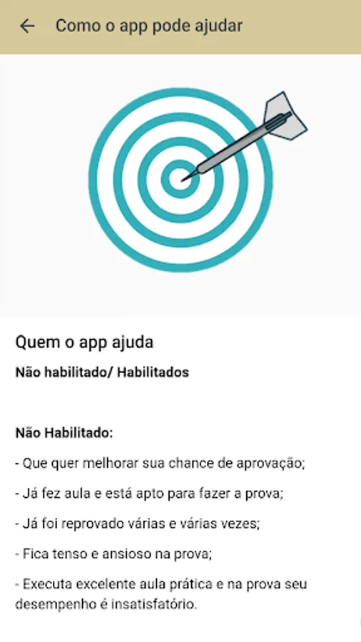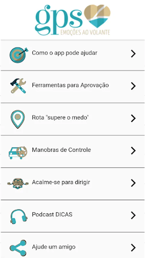 That's why the app was built with the intention of informing and clarifying the fear of driving and how to deal with the nervousness and anxiety that interferes with the test and driving.