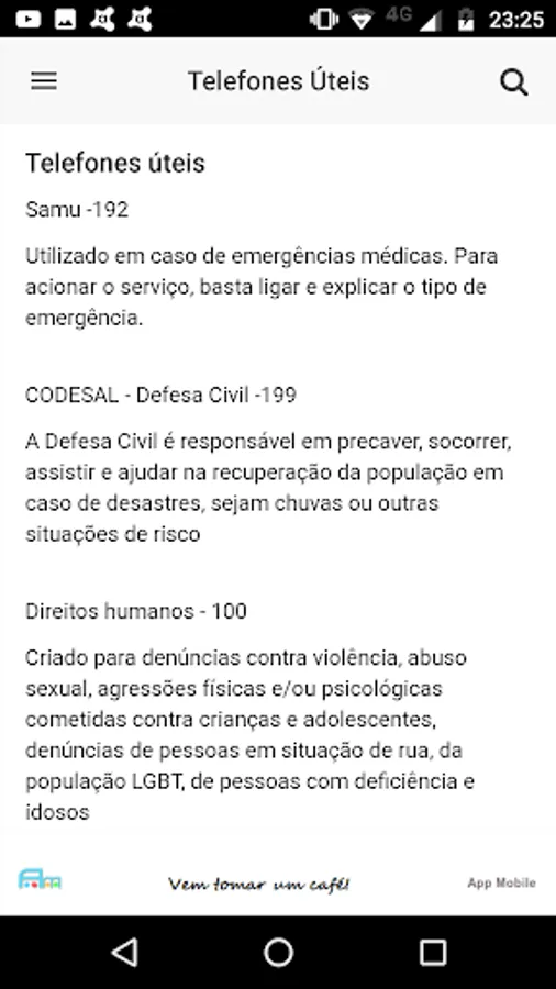 In addition, the application provides public utility information such as public places for entertainment, art, culture, spirituality, health, safety, among others. The goal is to converge as much useful information as possible to make life easier.