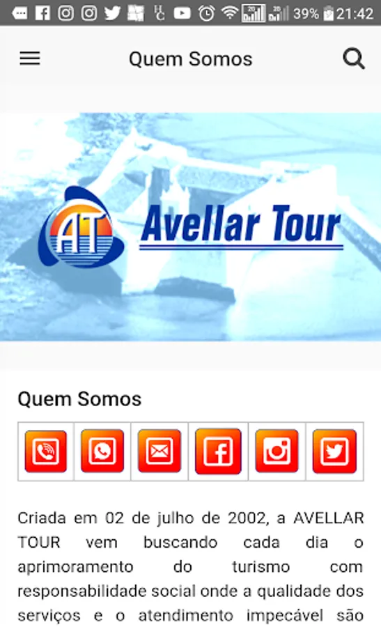 Created on July 02, 2002, AVELLAR TOUR is seeking every day the improvement of tourism with social responsibility where the quality of services and the impeccable service are evidenced brands.