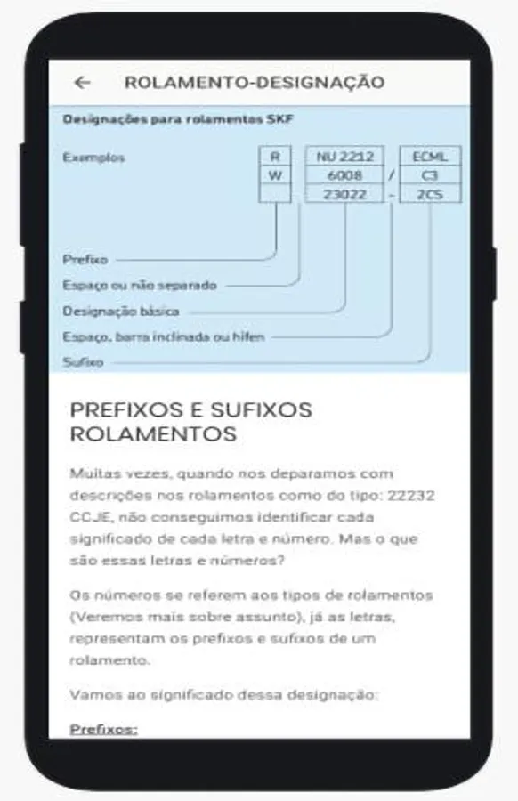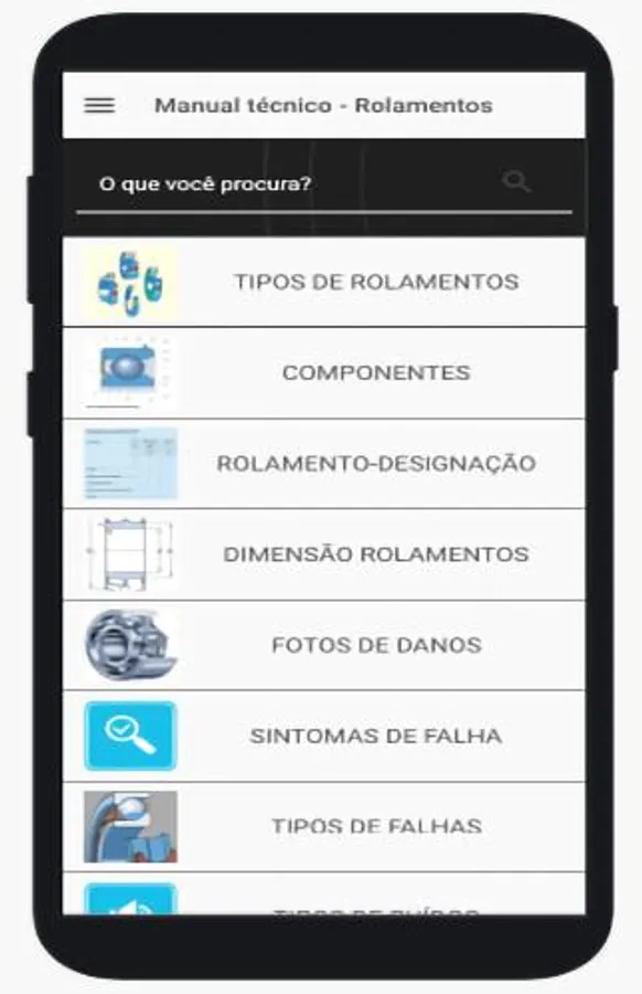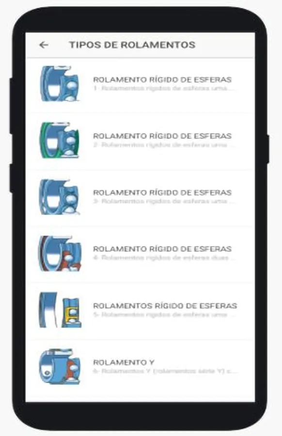 User application wants information in the palm of the hand. It is a digital manual on bearings, reducers, pumps, bearings, retainers, among others. Where you have photos, videos, types of failures, selection, among other content.