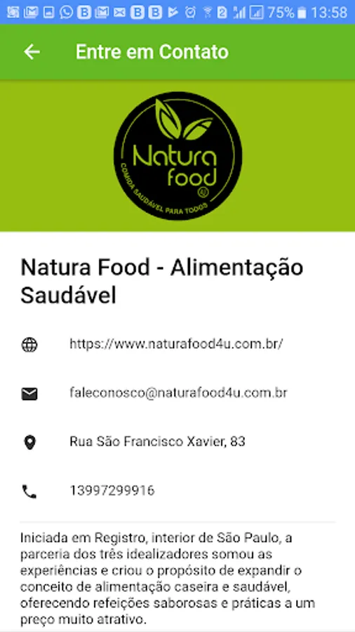 Natura Food has come to show that healthy eating can be practical and tasty. Initiated in Registro, São Paulo's interior, the partnership of the three creators added the experiences and created the purpose of expanding the concept of homemade and healthy eating, offering tasty and practical meals at a very attractive price. After aligning some concepts, we chose to develop a differentiated product, but maintaining the identity of homemade and healthy food. Every detail has been carefully thought through, from the selection of suppliers and ingredients, preferably from family and regional agriculture, specialized nutritional advice and also the recyclable packaging that can be microwaved without any harm to health, as it is sealed and free. of Bisphenol A.