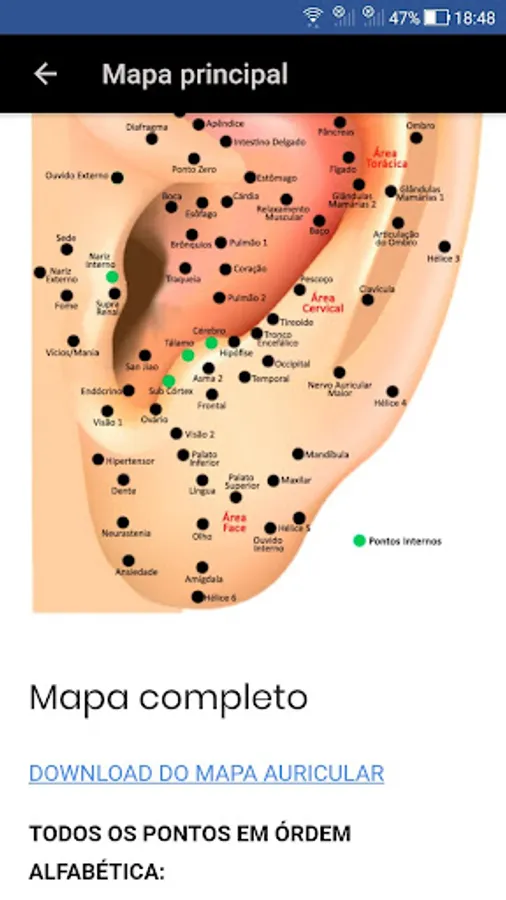 - Complete Auricular Map: based on the auricular points map of the auriculotherapy training course for UFSC primary health care professionals.