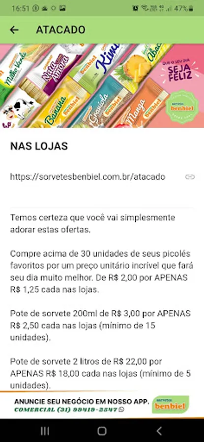 Sorvetes Benbiel is synonymous with QUALITY and the brand of ice cream and popsicles that has won over and retained customers since 2004.