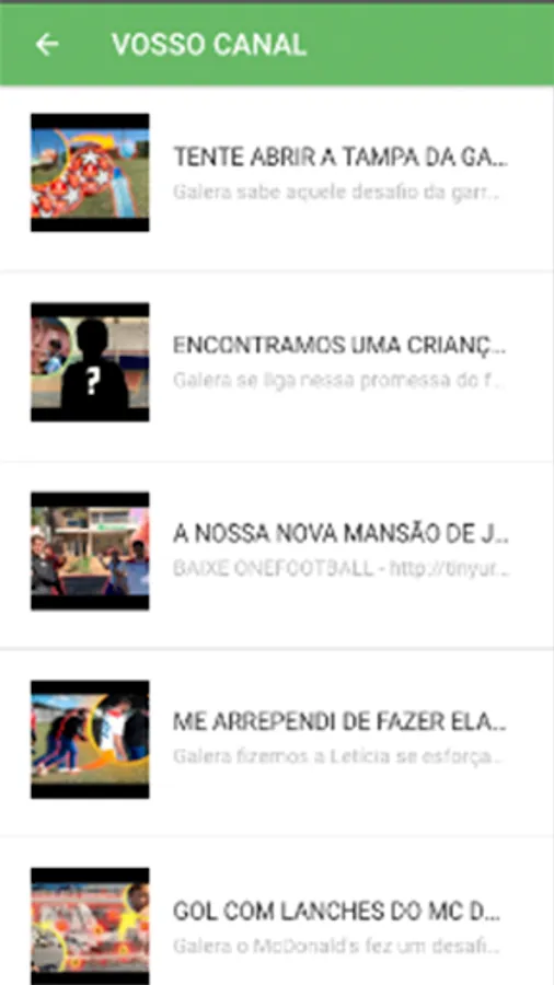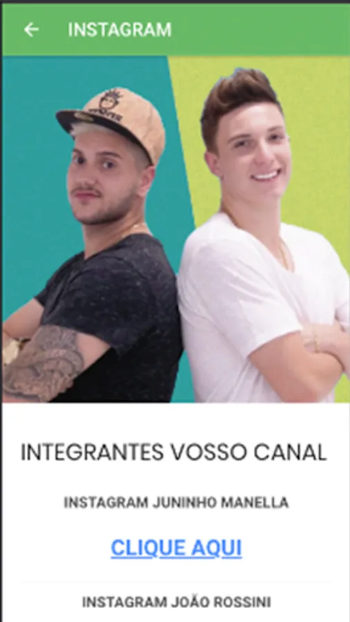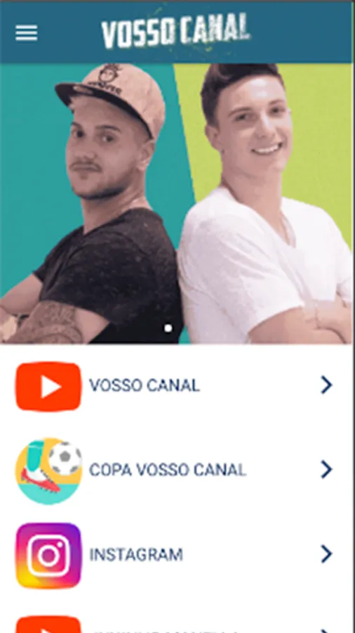 App with videos of Canal Vosso Canal, with the instagram of Juninho Manella, Rossini, Letícia and Gonze and on the Vosso Canal Cup.