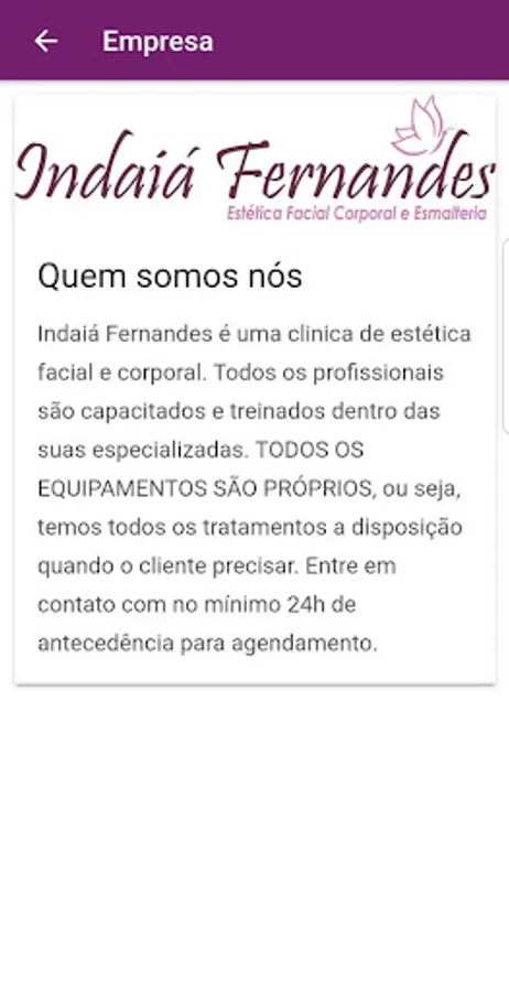 Indaiá Fernandes is a clinic of facial and body aesthetics. All professionals are qualified and trained within their specialized. ALL EQUIPMENTS ARE OWN, ie we have all treatments available when the customer needs it. Please contact at least 24 hours in advance to schedule.