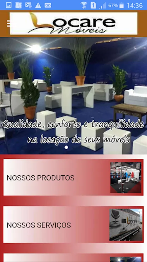 The Locare app has come to facilitate and interact with your customers in choosing the furniture or accessory they need to hold their event. When browsing the application the user will find the various furniture and accessories divided into categories in order to facilitate their choice. After choosing the desired product the user can contact Locare's commercial department and confirm their choice. Sail calmly and calmly and make a good choice and make your event a success!