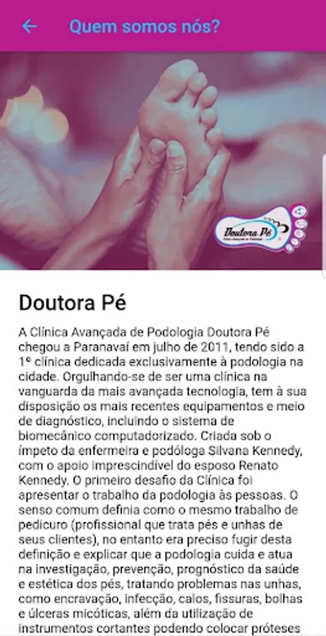 Dr. Pé Advanced Clinic of Podiatry arrived in Paranavaí in July 2011, and was the first clinic dedicated exclusively to podiatry in the city.