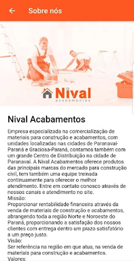 Company specialized in the commercialization of materials for construction and finishing, with units located in the cities of Paranavaí-Paraná and Graciosa-Paraná, we also have a large Distribution Center in the city of Paranavaí. Nival Finishes offers products from the leading brands in the civil construction market, as well as a continuously trained team to offer the best service. Contact us through our channels and service on the site.