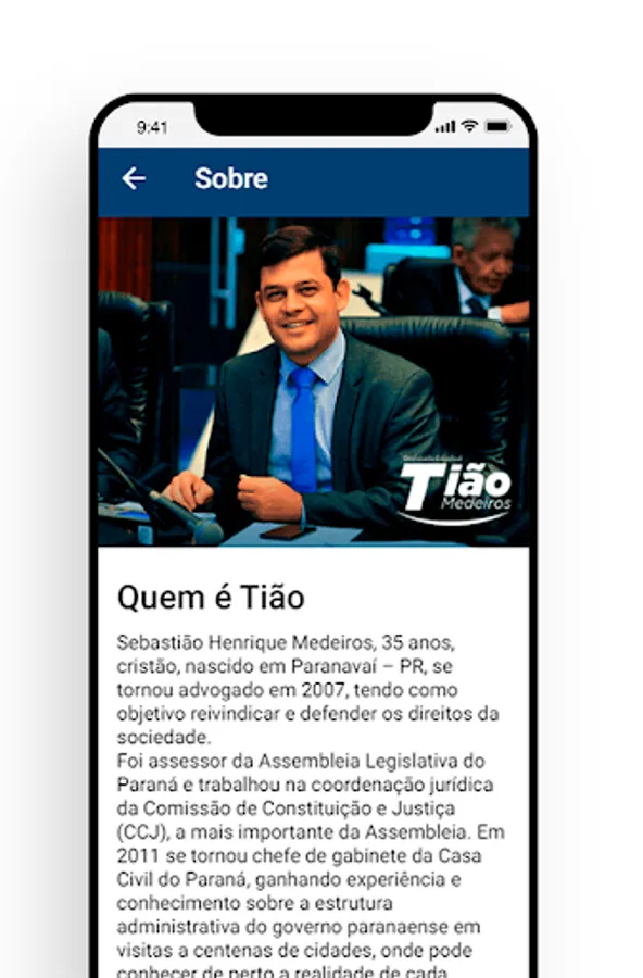 In 2018, Tião Medeiros was elected State Deputy by the Legislative Assembly of Paraná for the second consecutive time with 54,276 votes. Already in 2019, he becomes Chairman of the Public Works, Transport and Communication Commission and member of the CCJ.