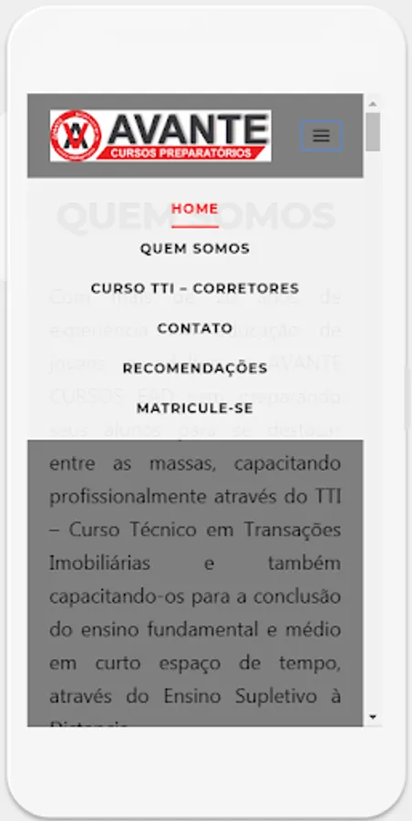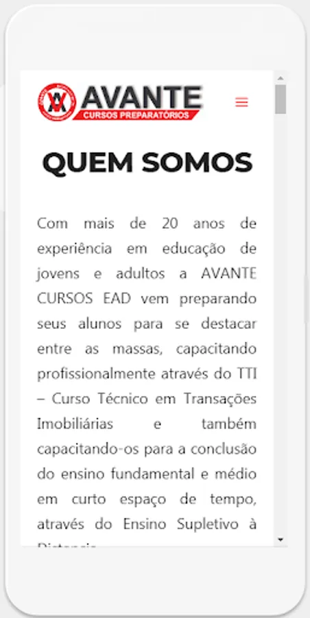 With more than 20 years of experience in youth and adult education, AVANTE CURSOS EAD has been preparing its students to stand out among the masses, professionally training through the TTI - Real Estate Transactions Technical Course and also enabling them to complete elementary school. and medium in a short period of time, through Distance Learning.