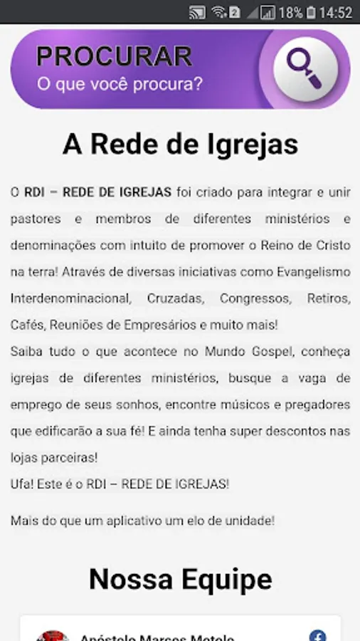 RDI - REDE DE CHURCHES was created to integrate and unite pastors and members of different ministries and denominations in order to promote the Kingdom of Christ on earth! Through various initiatives such as Interdenominational Evangelism, Crusades, Congresses, Retreats, Cafes, Businessmen Meetings and much more!