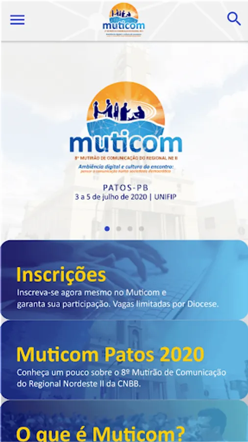 The official application of the 8th Communication Task Force of the Northeast Regional II of CNBB - Muticom Patos 2020, contains all the information of the event, so that the participant has in hand everything that will happen during the event.