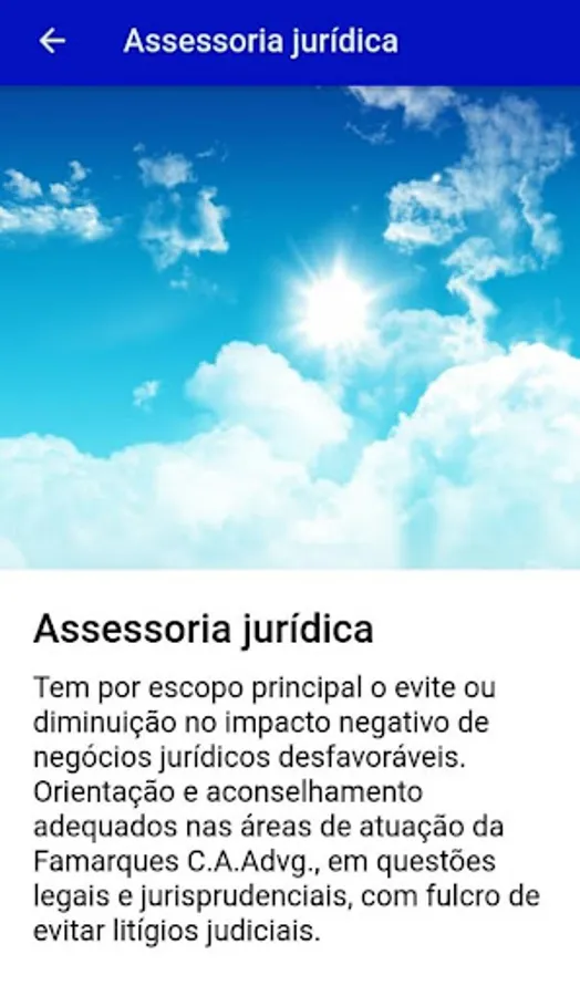 Fabiano Marques Consultoria, Assessoria & Advocacia is founded on the supreme values of society, such as justice, ethics, integrity, family and human dignity. Its primary scope is access to justice through legal means with a preventive focus on demands and disputes.