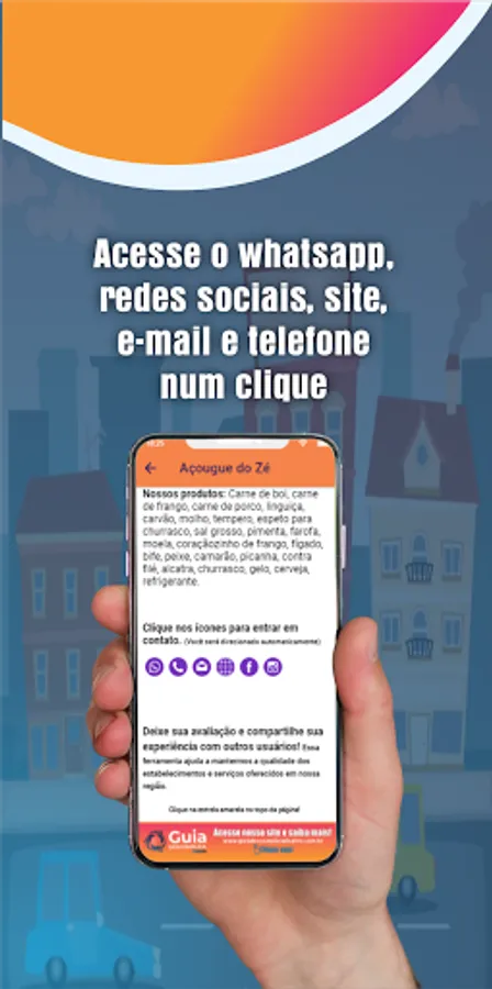 -Click on the contact icons and be automatically redirected through the functions of your cell phone, such as route by gps, whatsapp, social networks, internet browser ...