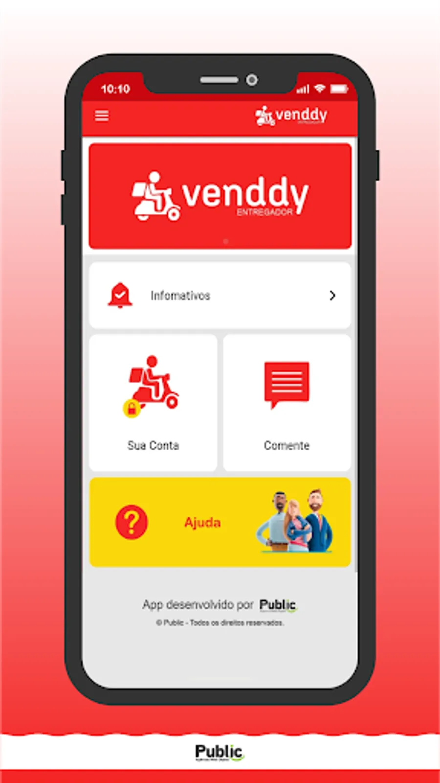 The "Venddy Deliverador" app has its exclusive use for the delivery men of the Venddy Delivery App.