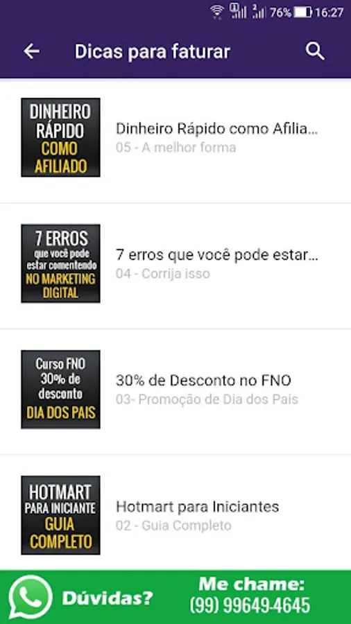 You will be able to ask questions directly with the creator of the application, Gláuber Uchôa, who works as an affiliate and invoice working over the internet.