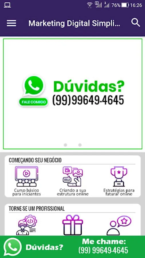 Inside the app you will have daily tips on how to get started in Digital Marketing, with complete courses taught you from scratch and step by step everything you need to know to start as an affiliate.