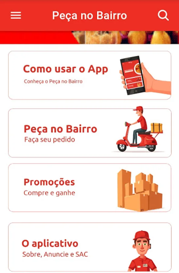 Application for establishments that work with food delivery and pickup, located in the Vila Manoel Sátiro neighborhood in Fortaleza-CE and neighboring neighborhoods.