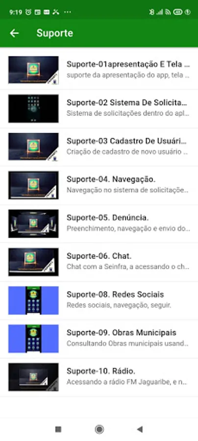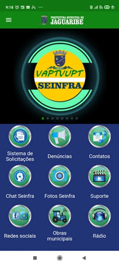 In addition the application has an area for anonymous or identified complaints, Chat with SEINFRA, consultation of works throughout the year in the city of Jaguaribe, access to social networks, local radio of Jaguaribe, viewing photos of services provided by SEINFRA during every year, direct contact through various communication channels and location of the city departments and SEINFRA infrastructure and the SDECTCT economic development, tourism, science and technology secretariat, the application is self-instructive with a video support module for learning how to use it of the application by all age groups of users.