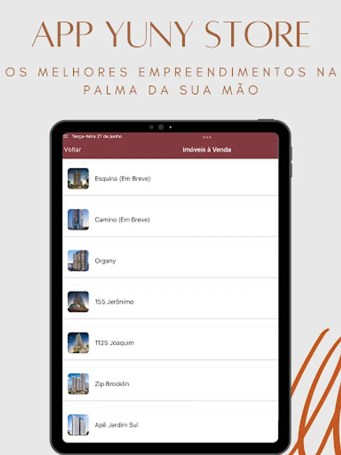 Productivity application for brokers who work on Yuny Incorporadora's real estate. Contains properties for sale, photos, plans, virtual models, virtual tours, price tables, sales mirror updated in real time and much more.