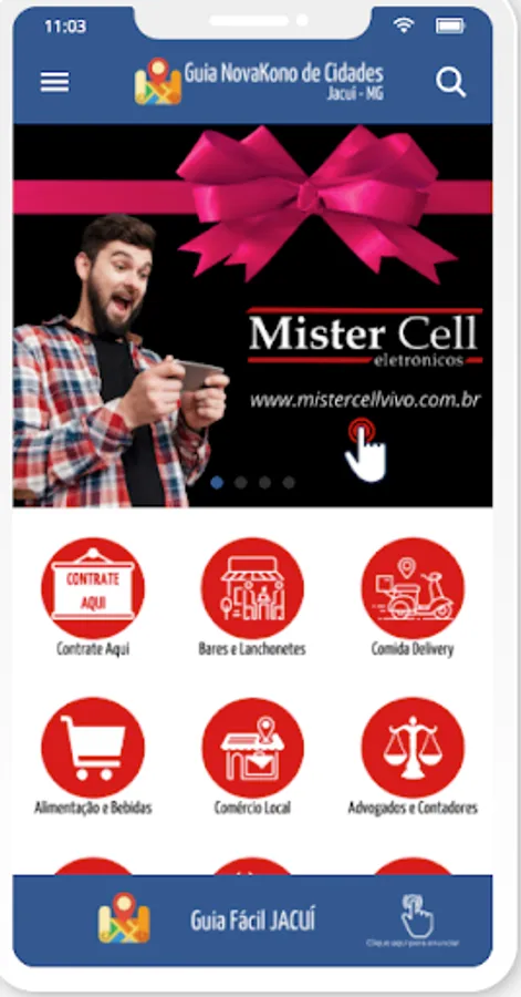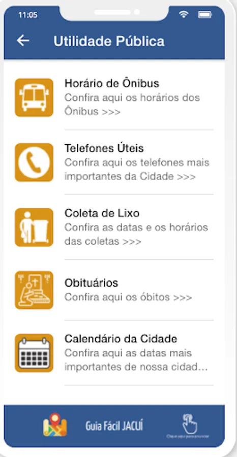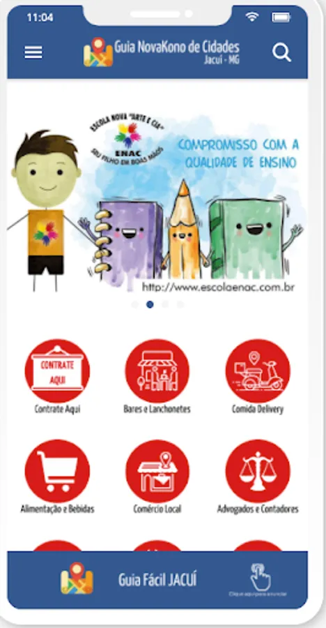 This is the JACUÍ Easy Guide App. In it you will find everything you need. Pharmacy open to bus schedule. You can place orders at the delivery of your choice or call a taxi. Here everything is possible. It's another NovaKono product.