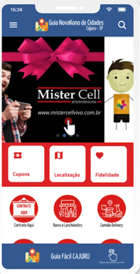 This is the CAJURU Easy Guide App. In it you will find everything you need. Pharmacy open to bus schedule. You can place orders at the delivery of your choice or call a taxi. Here everything is possible. It's another NovaKono product.