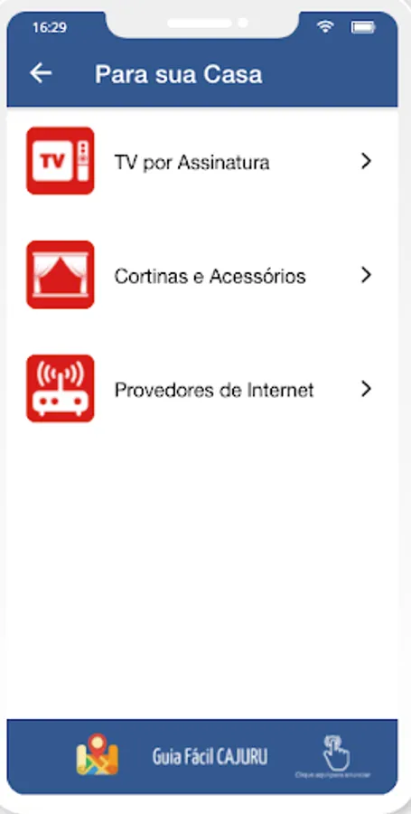 This is the App Guia Fácil ITAÚ. In it you will find everything you need. Pharmacy open to bus schedule. You can place orders at the delivery of your choice or call a taxi. Here everything is possible. It's another NovaKono product.