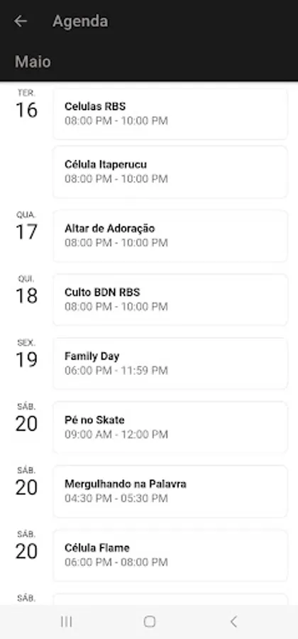 Applications for visitors and members of the church Bola de Neve Rio Branco do Sul, through it the user can follow the church's schedule.