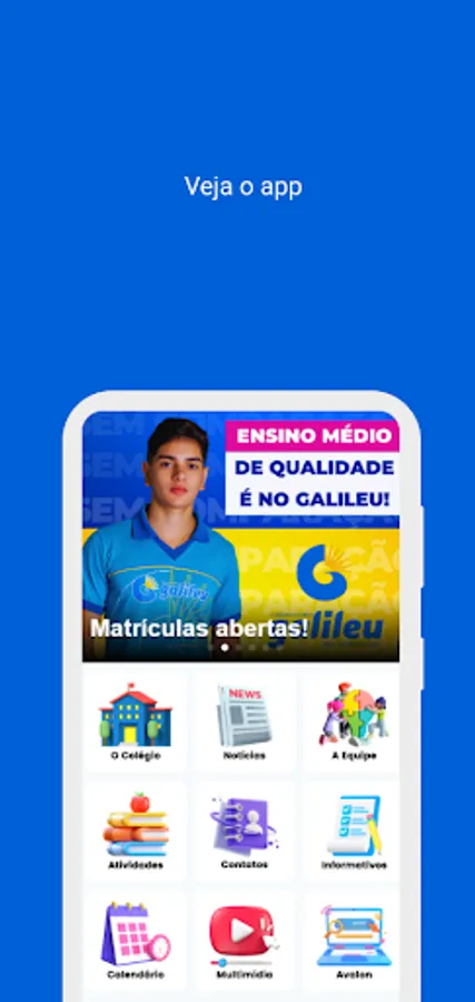 This is the application of Colégio e Curso Galileu, an educational institution founded on 03/12/1992, by the brothers Ednaldo Ribeiro (Naldo) and Eliomar Ribeiro. Recognized for teaching excellence, Galileo is now even closer to you. Stay in the loop and follow daily everything that happens at the institution that is the absolute leader in approvals in the south and extreme south of Bahia.