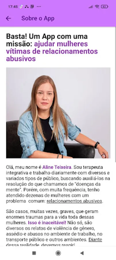 Hello, my name is Aline Teixeira. I am an integrative therapist and I work daily with many and varied types of public, seeking to help them resolve what we call “diseases of the mind”. However, very often, I have seen dozens of women with a common problem: abusive relationships.