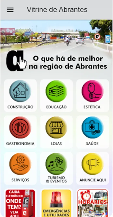 Commercial and public utility application with interactive buttons, are professionals companies, schools, stores and delivery in the Abrantes region: Estrada do Coco, Jauá and Vila - All classified by segments and sections, super easy to find what you are looking for AND a phone list with call button for Medical Center, Samu, Military Police, Firefighters, Life Appreciation Center, Notary, Coelba, Embasa, Police Station and many others. It also has Collective Bus Schedule, List of ATMs with location on Google Maps, Mural with job offers, vacancies and available manpower. Download the Abrantes Showcase app. The best of the Abrantes region, in the palm of your hand!