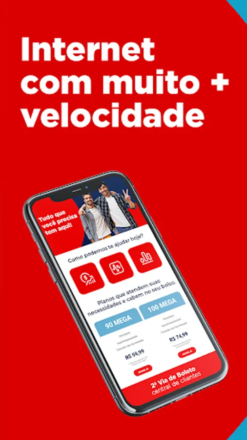 With the customer center you can have access to a duplicate billet, internet consumption, paid bills and change the speed of the chosen plan.