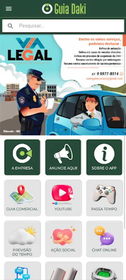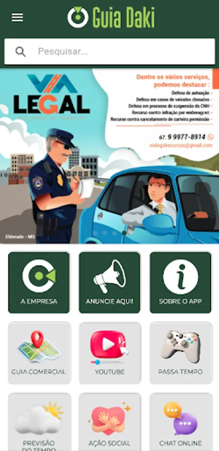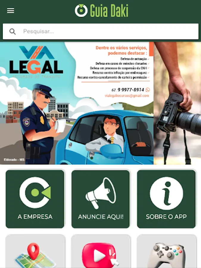 The Guia Daki App is an application developed with the aim of bringing commerce, self-employed professionals and consumers closer together, using the fastest growing technology in the world, the cell phone.