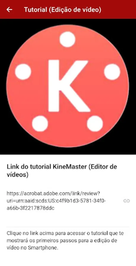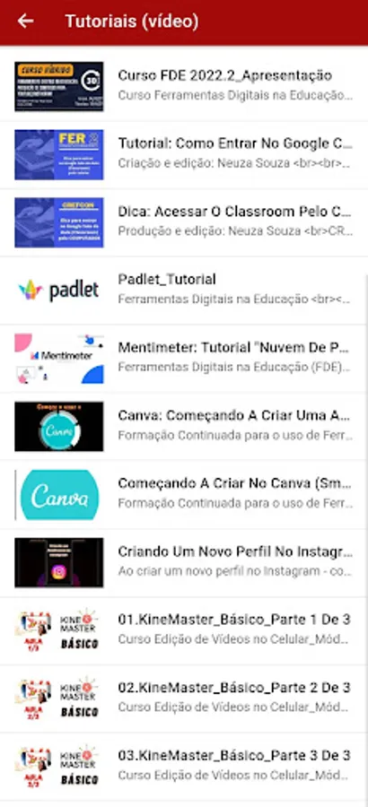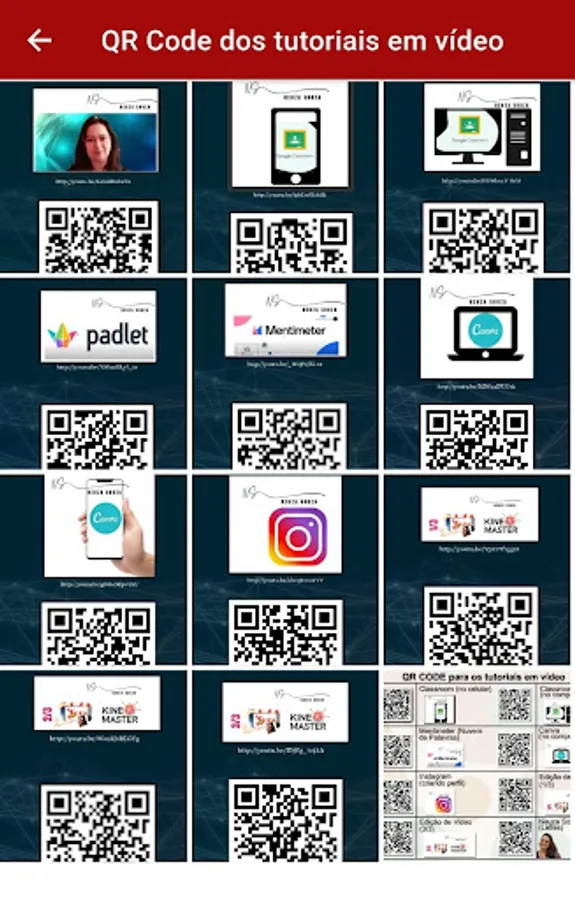 The application is filled with educational material, such as: tutorials in pdf, docx and png, which can be downloaded to your cell phone or computer for printing and/or as a collection, in addition to video tutorials.