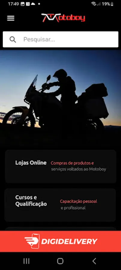 Application for Motoboys deliverys. Support, promotions, health and leisure, partners, courses and qualification, Online stores, entertainment and much more...