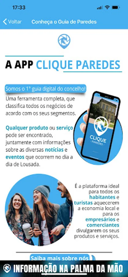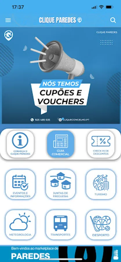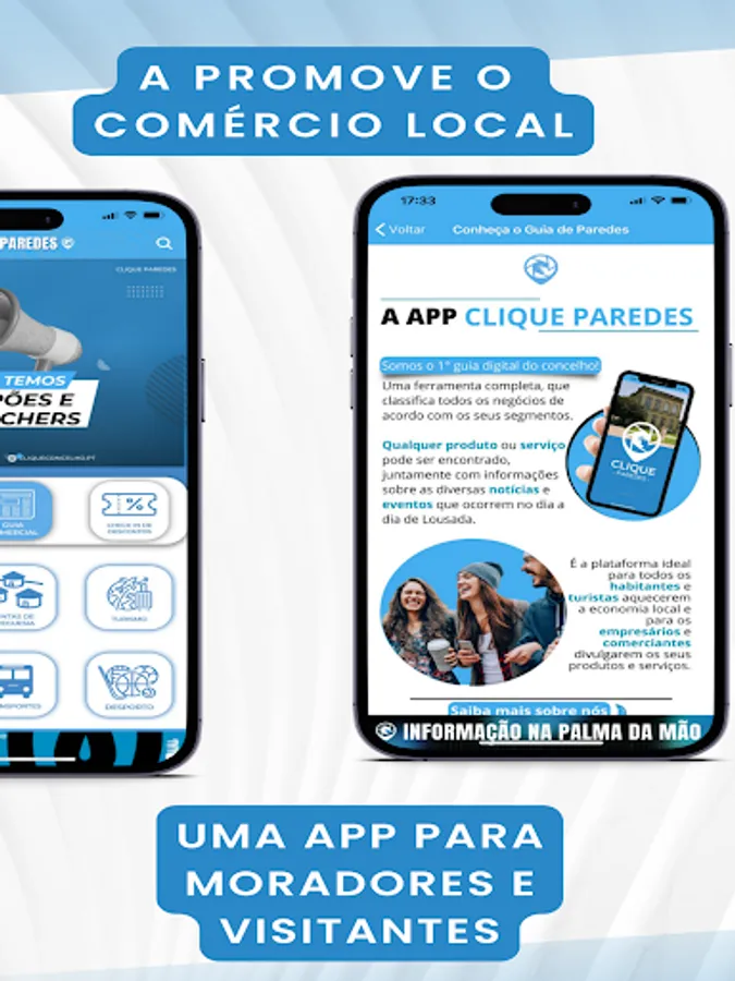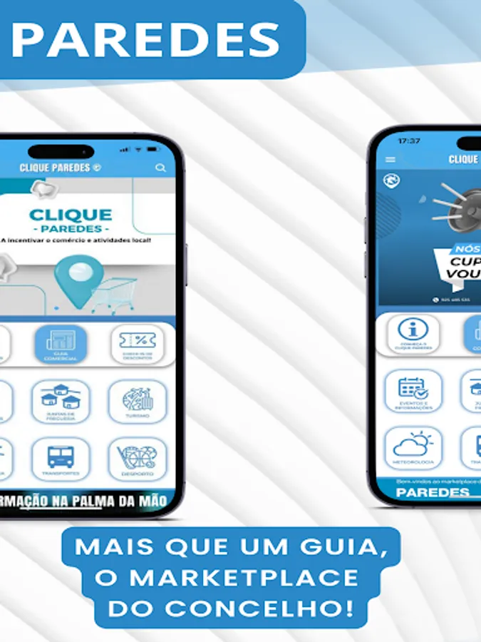 In the Clique Paredes App, you can find a Business Guide with several resources about local establishments, services, products, offers, loyalty card, delivery, online stores and much more. In addition to having discount coupons at accredited locations in the App.