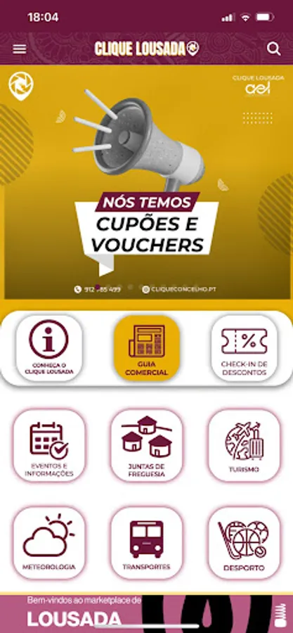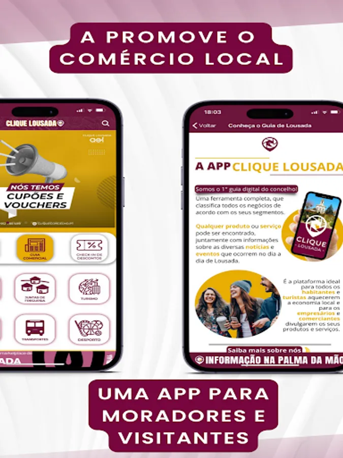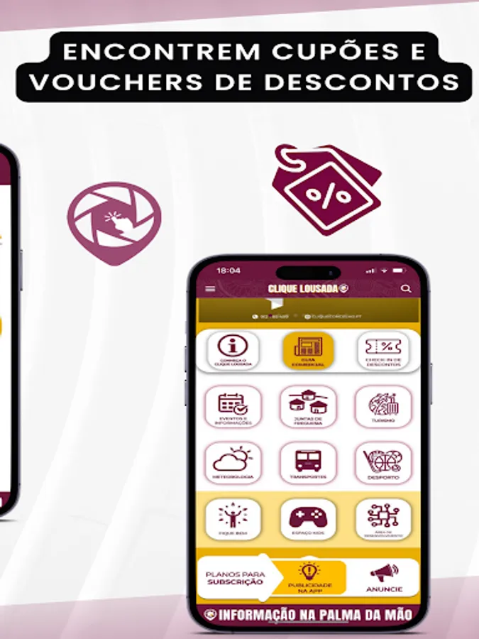 In the Clique Lousada App, you can find a Business Guide with several resources about local establishments, services, products, offers, loyalty card, delivery, online stores and much more. In addition to having discount coupons at accredited locations in the App.