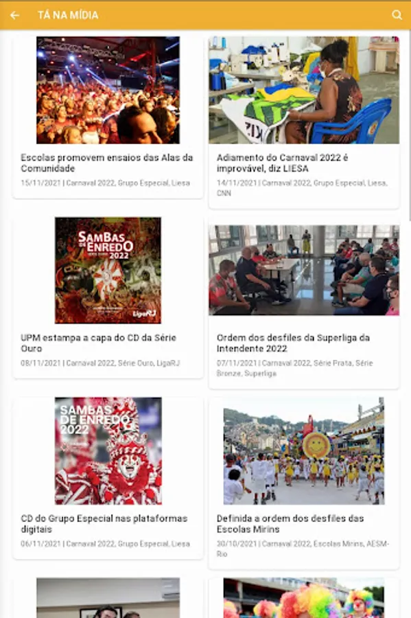 And, in response to suggestions sent by our users, the field 'search' - to facilitate the search for the subjects of interest - and a 'samba gallery' - per association - were included, starting with Empress Leopoldinense and, soon, covering all the schools of the Special Group.
