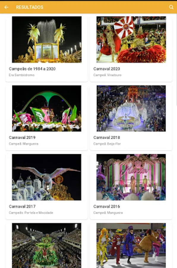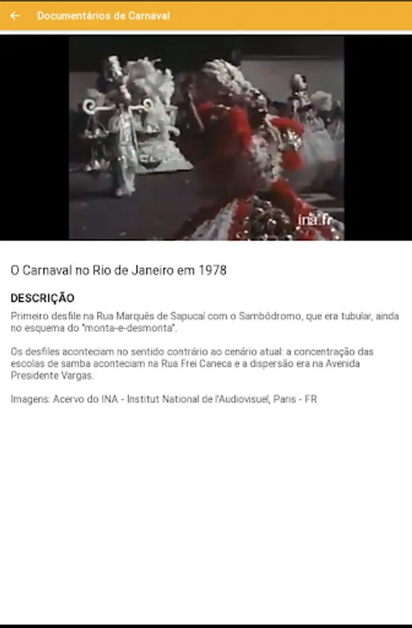 - watch documentaries about the carioca carnival and review all the champion parades since 1984;