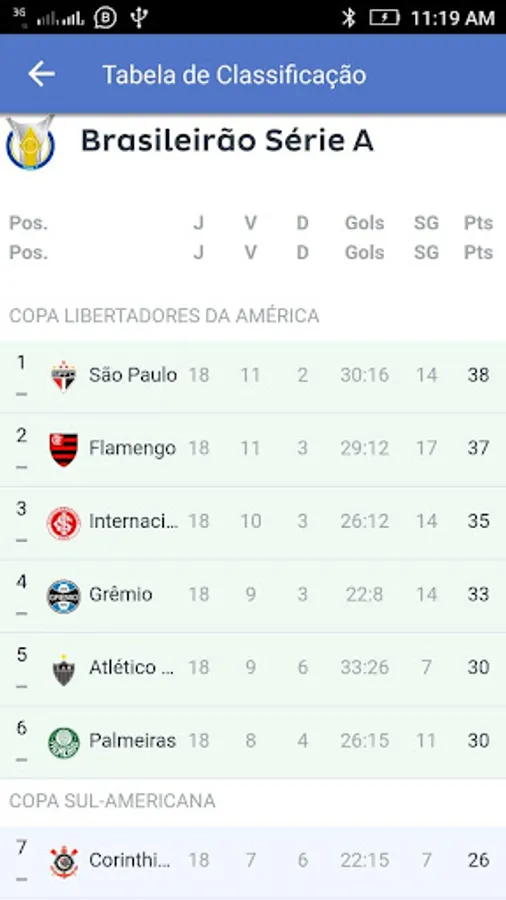 Follow the results of the Brasileirao rounds, Classification Tables and Cartola FC;